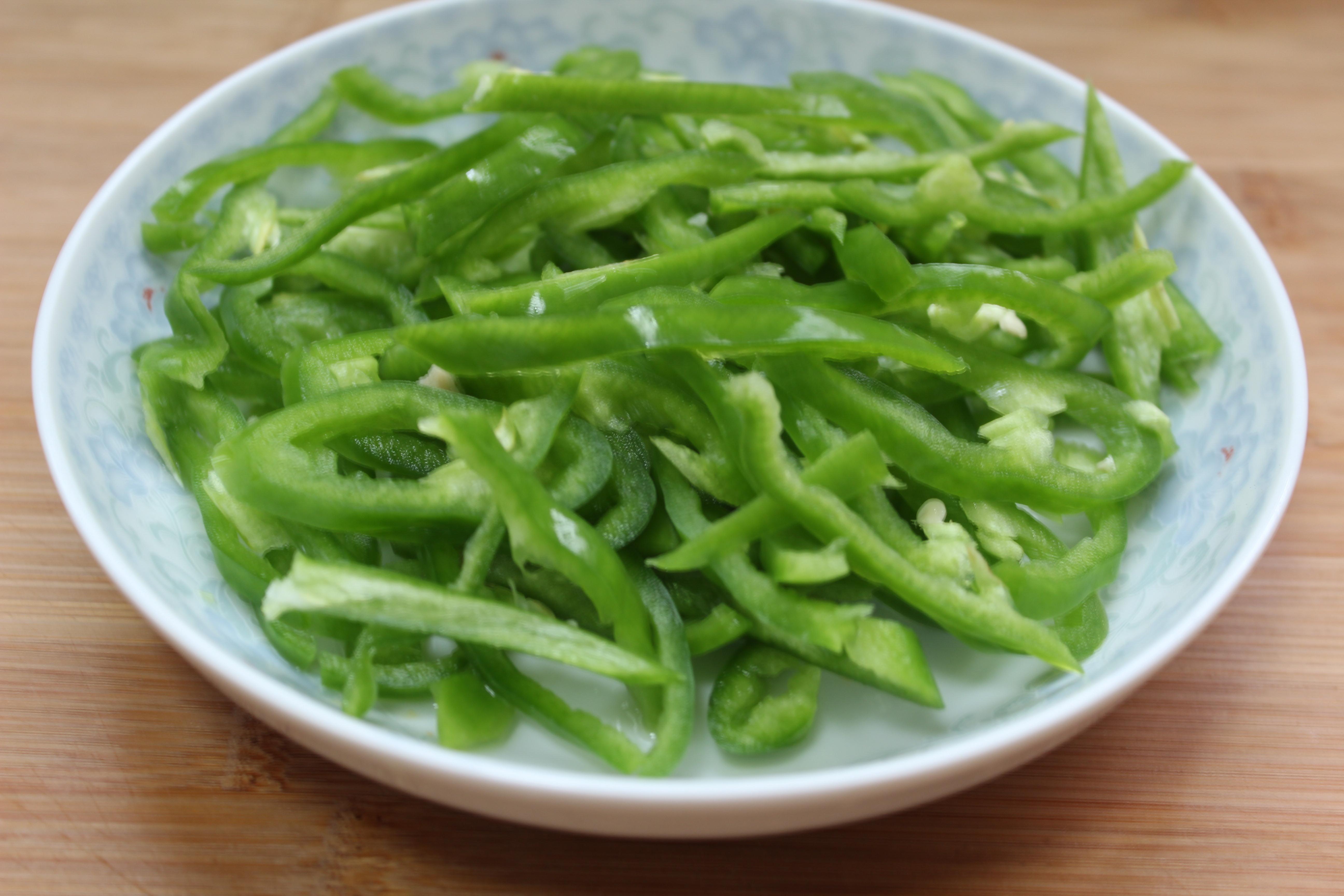3、把尖椒洗净,(里边的尖椒籽可以去掉也可以不去掉根据个人喜好),切成丝。