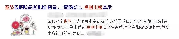 | 每到新春佳节这段时间,人们大鱼大肉的同时,也是鱼刺卡喉的高发期,因鱼刺引发的“血案”屡见不鲜……