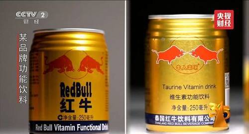 某公司 “生产酷似红牛的饮料——金罐包装、包装图案为一只格斗的公牛 据“3·15”晚会报道,自称来自英国红牛授权的功能饮料,甚至还是爱奇艺体育的合作伙伴。据称,某公司这款饮料在四川、重庆、河南等全国重要城市做到了1亿元的销售。 山寨产品能够销售的原因不仅是有些消费者被欺骗、有些消费者图便宜,更重要的因素是暴利使其得到了部分经销商的青睐。比如,小瓶山寨营养快线每箱15瓶,售价50元,1瓶单价4元,一个月能卖上千箱。这种山寨营养快线从批发商那里拿货价是每箱22元,即每瓶山寨营养快线经销商所获利润2.5元。这样算,利润是相当可观的。 2、成本低,侵权行为难根除 超凡股份合伙人、超凡研究院资深研究员唐有龙表示,有些山寨、仿冒产品的销售属于突击性质,在过年及节假日市场监管人员不足时,假货大量出现;上班时间一到,这些产品又全都消失不见了。假冒产品制造成本低且转移迅速,产品量又不大,就是赚快钱。在这种情况下,打假难度大,不容易根治。