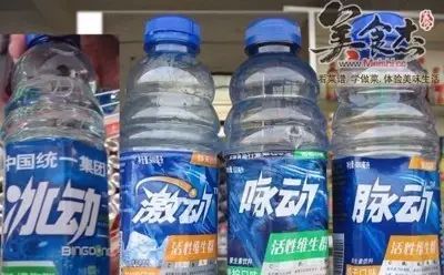 “脉动” vs “冰动、激动、咏动”。这四款饮料的造型完全一样,只是在包装上略有区别。