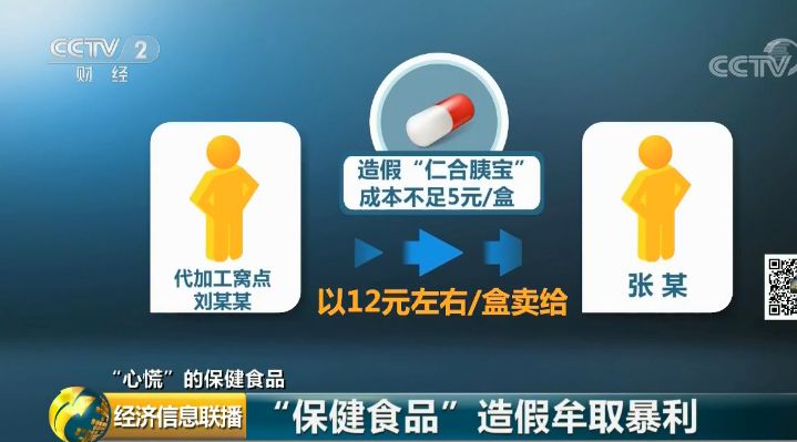 承德市公安局食药支队张忠钰:比如说你需要仁合胰宝,那我就给你装一个仁合胰宝的包装。 警方了解到,代加工窝点的刘某某将成本不足5元一盒的造假“仁合胰宝”,以12元左右的价格卖给张某;张某再以40元左右的批发价,卖给程某;而程某在电商平台上以125元的价格卖给消费者,每一个环节都存在暴利。