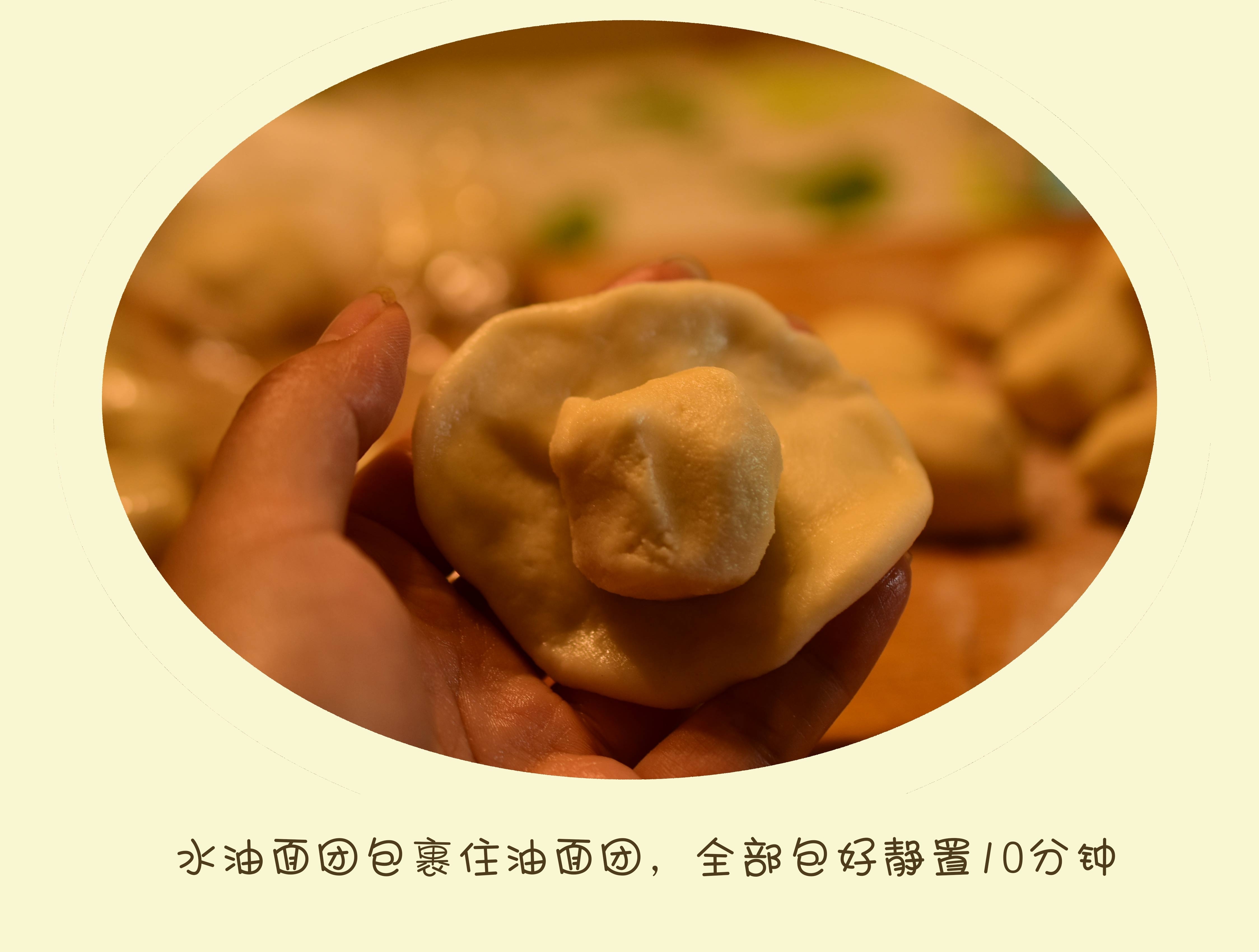 2,水油面团包裹住油面团,全部包好静置10分钟