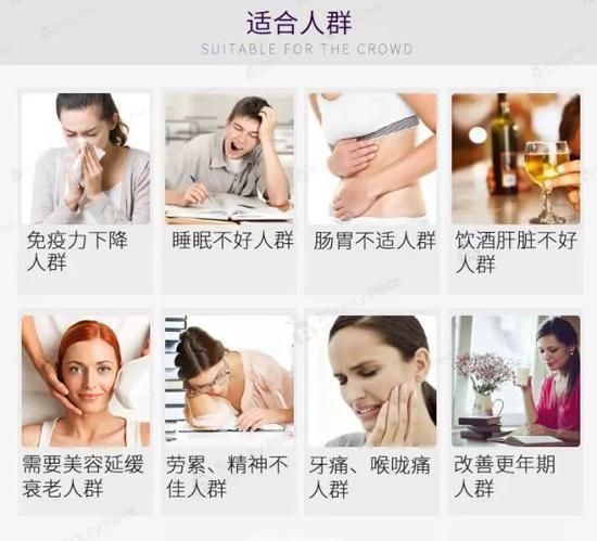 图片来源:某产品网站截图 对比一下同款白藜芦醇产品 在中国的宣传 简直是“包治百病”了 什么情况都能吃