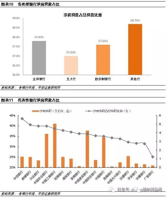 全部银行涉房贷款占总贷款比重为37.8%,分银行类型来看,五大行涉房贷款占比最低为37.0%,其次是12家股份制商业银行的37.6%,涉房贷款占比最高的是其他行,达38.7%。