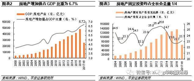 我国房地产业已经历了十几年的高速发展,行业生产总值占GDP的6.7%,房地产固定投资总额占全社会投资总量的23%,接近四分之一,成为拉动经济增长的重要引擎。2015年以来,随着货币政策的不断宽松,各地调控政策的放松,以及棚改等去库存政策的推进,房地产行业开启了新一轮的上行周期,一线城市及重点二线城市房价先后暴涨,其示范效应也带动三四线城市房价的攀升。