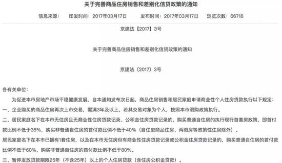 | " 卖家报价728万,从7点半砍价到夜里11点半,745万成交。" 这是去年3月17日前,北京楼市狂热氛围的一个典型写照。但也正是在3月17日,北京出台了"认房又认贷"、提高二套房首付的"3·17新政"。 这项被称为北京楼市最严厉调控措施的"3·17新政",前天正好满一年。这一年,北京楼市真的降温了吗? 二手房房价与2016年12月接近 " 和去年限购前比,目前朝阳区的房价均价跌了15%左右吧!" 3月13日下午,在北京市朝阳区一家链家门店内,一位中介对记者表示,经过一年多的回调,目前该区域房价已经回落至2016年第四季度的水平,"普遍跌了一万元左右。" 小编查询第三方购房平台看到,3月北京朝阳区的二手房均价为71717元/平方米。 图片来源:房天下网站截图 2017年3月17日,北京市住建委、人民银行营管部、银监局、北京市公积金管理中心四部门联合发布《关于完善商品住房销售和差别化信贷政策的通知》,在实施认房认贷的同时,大幅度提高二套首付比例和按揭利率,政策规定: 居民家庭名下在本市已拥有1套住房,以及在本市无住房但有商业性住房贷款记录或公积金住房贷款记录的,购买普通自住房的首付款比例不低于60%,购买非普通自住房的首付款比例不低于80%。暂停发放贷款期限25年以上的个人住房贷款。