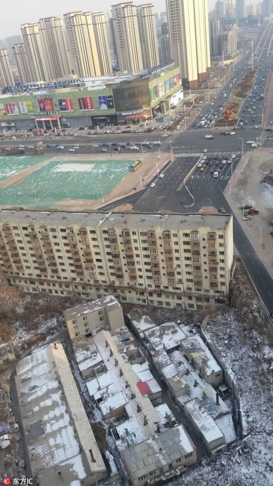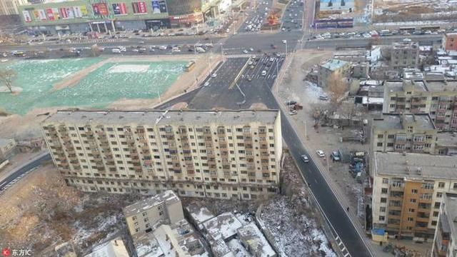 建设方只得出此下策,绕着走。道路无法完全通畅,车辆行至此处常常形成拥堵。而不愿搬离的钉子户也要付出代价,他们搬入高楼可能将遥遥无期。 |