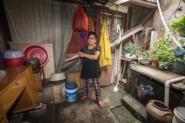 图转自孙大姐的朋友圈 孙大姐今年67岁,杭州人,住青年路社区三元坊5号,是社区综治委员。 三元坊5号是一座二层建筑,一楼有公用的水龙头、淋浴房、储藏室等;二楼是睡觉的地方,住了5户人家。连通一楼二楼的,是一个木梯子。 孙大姐说,烧饭在小屋里,几户人家合用,由于年份长了,墙上的废油会滴到身上,要穿上整件防油衣才能烧菜、做饭。 孙大姐说,这房子有100多年的历史了,她在这住了30年,什么壁虎啊、黄鼠狼都见过,蜕下来的蛇皮也见过好几次,就是没看到过蛇。
