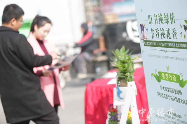 | 3月10日起,郑州恒大城"书香换花香"公益活动在郑州部分社区盛大开启,倡导市民捐出家里闲置的书籍,换领绿色盆栽,用书香换绿意,传递绿色生活的环保理念;用书香传递爱,让渴求知识的孩子们分享阅读的快乐。 3月10日上午在郑州某社区,活动还未开始,现场已经人气爆棚,霎时间洋溢起一片浓浓的绿色!