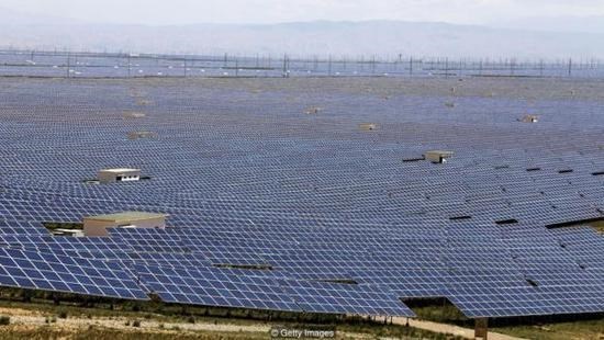 图示:超过60%的太阳能电池板都产自中国。 这些项目耗资数百万美元,其能否实现绿色能源目标? 市场研究公司彭博新能源财经(Bloomberg New Energy Finance)的伊冯娜·刘(Yvonne Liu)指出,中国是全球最大的太阳能电池板技术制造商。“这个市场真的很大,”她说。根据国际能源署(IEA)的数据,全球60%以上的太阳能电池板是中国制造的。因此,确保对太阳能电池板的高需求对中国有着明确的经济利益。 此外,增加可再生能源资源也是利国利民的目标。目前中国大约三分之二的电力仍来自燃煤发电。 不难理解,中国北部和西北部阳光普照的广袤平原变成了巨大太阳能发电场的所在地。那里有很多空间来建造它们,而且太阳能资源相当丰富。太阳能发电站的建设也一直在以极快的速度进行。国际能源署指出,中国提前三年就实现了自己的2020年太阳能装机容量目标。 此外在高原地区,一个非同寻常的项目是利用太阳能电池板为地网加热,地网的设计目的是融化永久冻土,这样树木就能在土地上生长。
