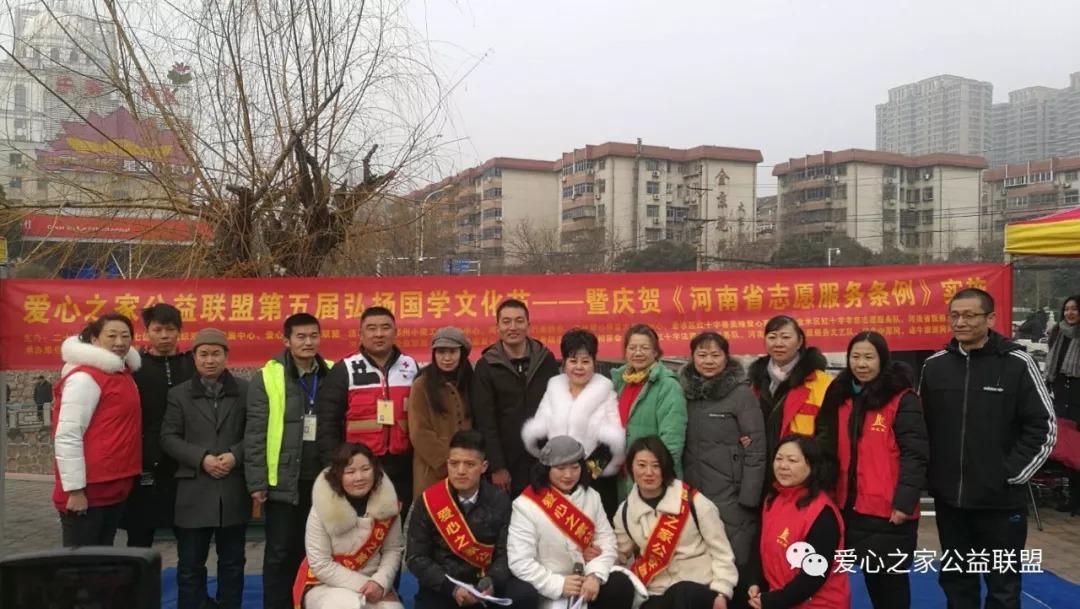 | 2月17日上午,由二七区民政局、二七区社会组织双服务发展中心、爱心之家公益联盟主办,由二七区暖心志愿工作站承办的“爱心之家公益联盟第五届弘扬国学文化节---暨庆贺《河南省志愿服务条例》实施”活动,在二七区郑密路淮河路叠彩园盛大举办。