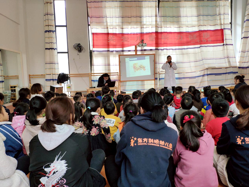 在东方剑桥幼儿园,来自金声听力的耳科医生先是为小朋友们介绍了关于耳朵构造的基础知识,声音是如何传入耳朵中的。 然后雨之露的助残社工询问了小朋友们关于生活中对声音的一些感性认识,小朋友们纷纷七嘴八舌的踊跃发言: 问:生活里都有哪些能发出声音呢? 抢答:音箱! 答:收音机! 答:架子鼓! 答:还有电子琴。 …… 人有一张嘴巴而有两只耳朵,世界上有很多美丽的声音,如果听不到,那该是多么让人遗憾沮丧啊!
