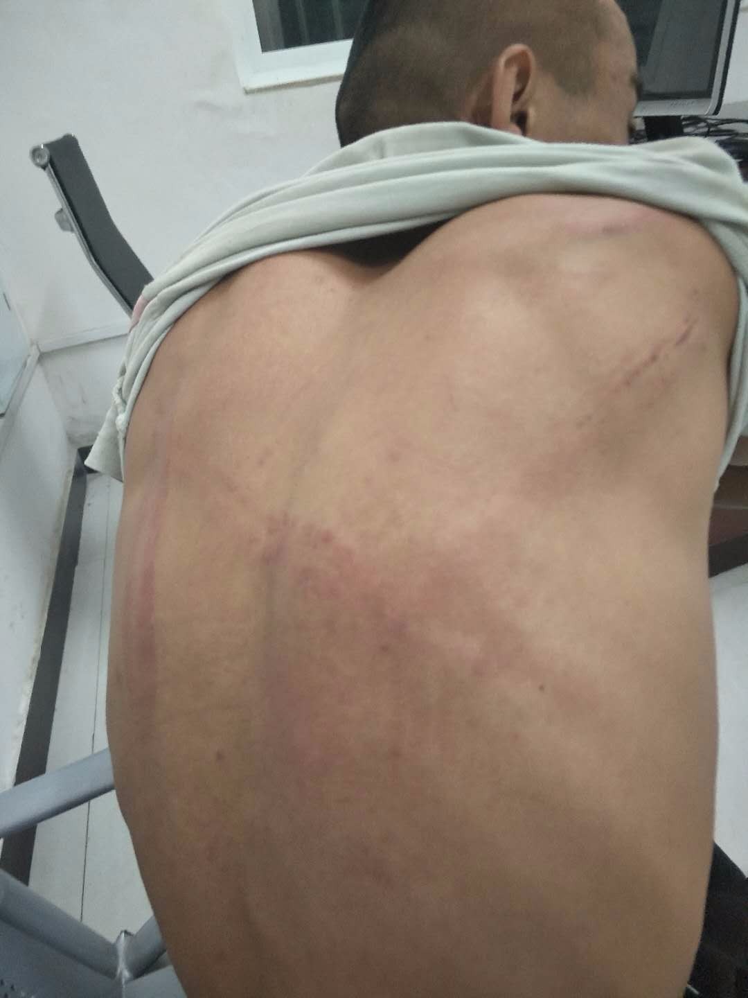 王保国背后被乱棍殴打、骨折,经法医鉴定为轻伤二级 讲起过去发生的一切,王保国仿佛做了一场噩梦。 王保国是一片天烤漆门厂工人,被辞退后,经结算共欠王保国工资4207元(后老板支付1000元)。8月25日下午,王保国一个人赶到烤漆门厂讨要工资,在一片天烤漆门厂办公室,厂长魏红伟与王保国一言不合,抬手就对其殴打,王保国逃离并报警后,魏红伟又追赶上来,在厂大门口对其进行了再次殴打,期间控告人不敢做任何反抗。在他乘坐公交车准备离开时,魏红伟又组织厂里其他4个人(这些人王保国都不认识)乘车追赶至公交车上,并控制住王保国,强行将他塞进他们驾驶的车内后带至一厕所附近,魏红伟及其他人又用木棍对其进行了轮番殴打,魏红伟还把王保国的手机抢夺过去摔碎,不让他报警。还要王保国承认“错了”,在王保国违心地接连说“我错了”之后,这些人才住手。更让王保国羞辱的是,这些人竟逼着他跪下,说“跪下就不打你了”。 遭此羞辱的王保国说,“当时连死的心都有”。