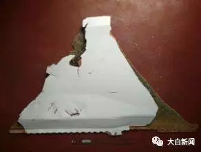 一块右侧发动机风扇整流罩的残骸被认为"几乎肯定"属于MH370。该部位覆盖于飞机引擎外部,是用来减少阻力、冷却发动机和装饰飞机的。 7 残骸部位:右侧垂直稳定器面板 发现时间:2016年8月