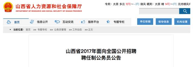 | 央视网报道:按照我国现行干部任用制度,公务员职务的任用方式有三种,即选任制、委任制和聘任制。目前,全国有多个省份先后试行了公务员聘任制。 11月8日,山西省人社厅公布,经国家公务员局批准,该省决定面向全国,为山西省经济和信息化委员会山西省大数据产业办公室,公开招聘聘任制公务员2名,年薪30到40万元。这是山西省首次试水聘任制公务员。
