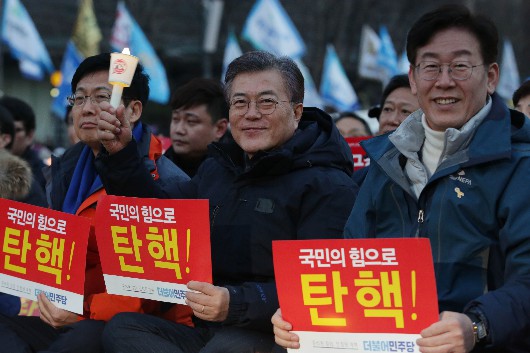 文在寅参加集会,呼吁弹劾朴槿惠 而第三项不利因素,就是文在寅本人的态度了。他还是总统候选人的时候,当问及赦免时就曾说过,"对于以朴槿惠前总统为首的亲信干政势力,应该根据法律和原则,严厉追究其责任。"他还在大选中作过承诺,特赦对象将不包含涉腐政经人士,而朴槿惠可谓这一精准"打击对象"。 |