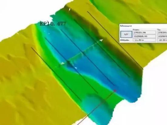 海床情况扫描▲ 管道储运有限公司所属中石化长输油气管道检测有限公司针对杭州湾海底管道所经海况复杂的特点,在国内率先研发成功了中国石化具有完全知识产权的三轴高清漏磁检测器、惯性导航测量系统和基于弱磁技术的管道应力检测系统。可以检测出最小长度5毫米、最小深度0.5毫米的腐蚀和机械划伤等缺陷,并能对缺陷位置进行高精度定位,还能检测出海底管道应力异常情况和管道漂移情况。