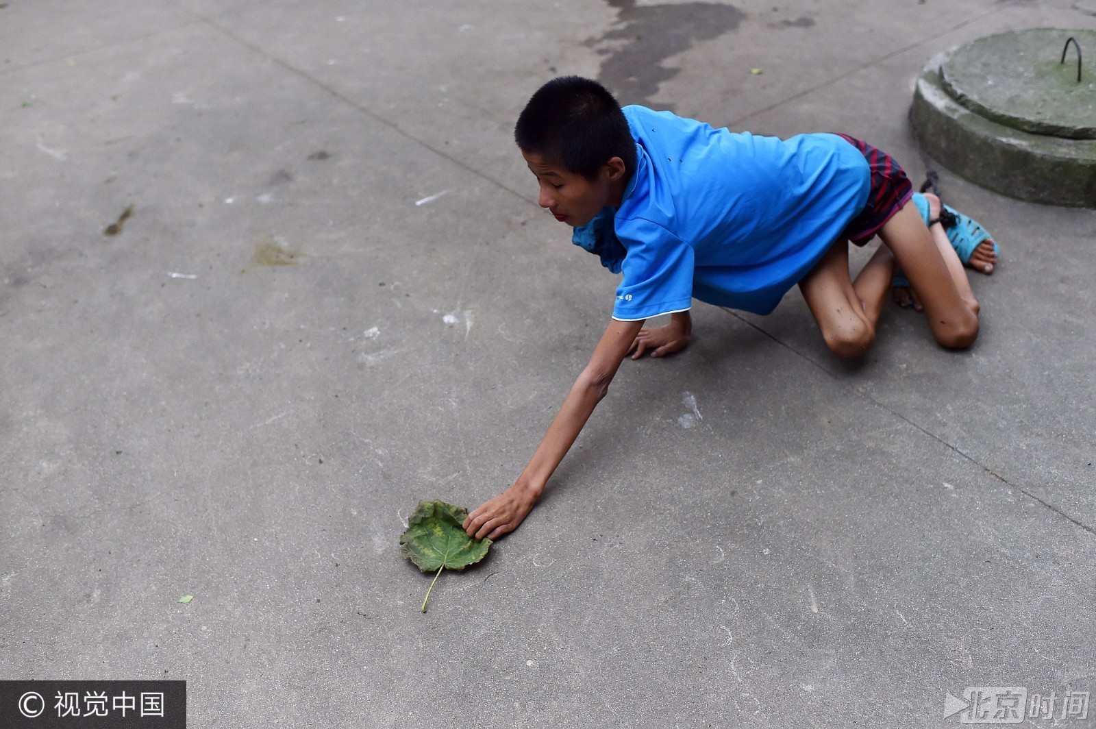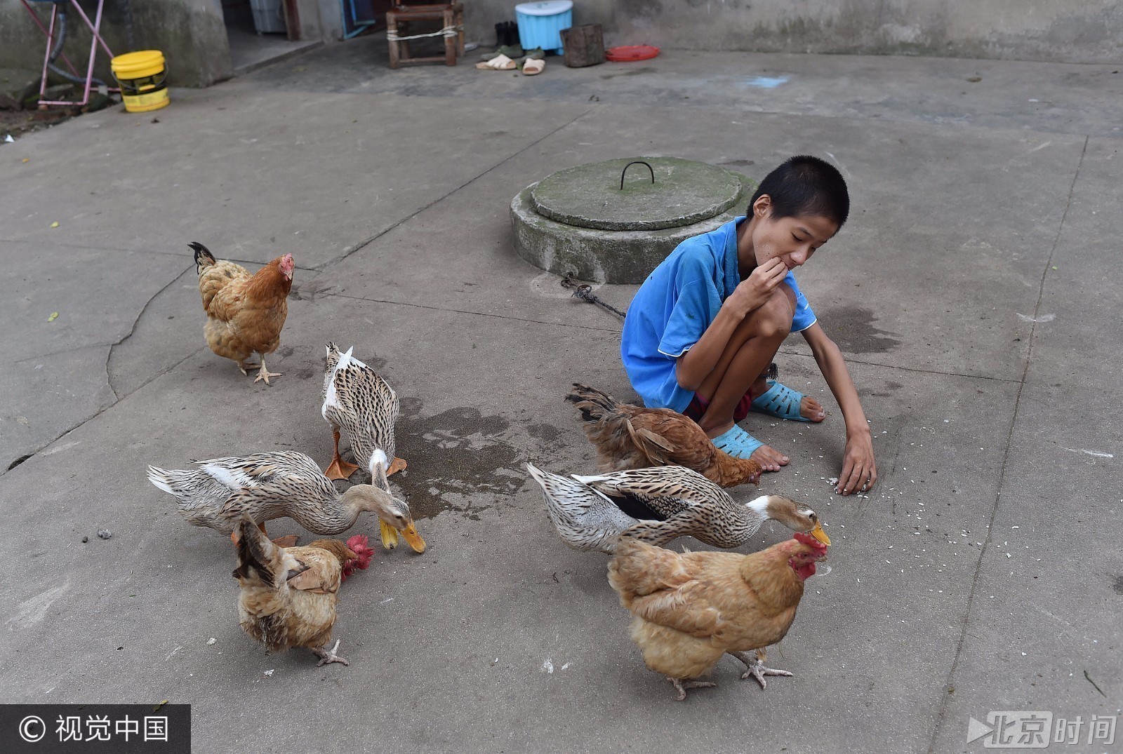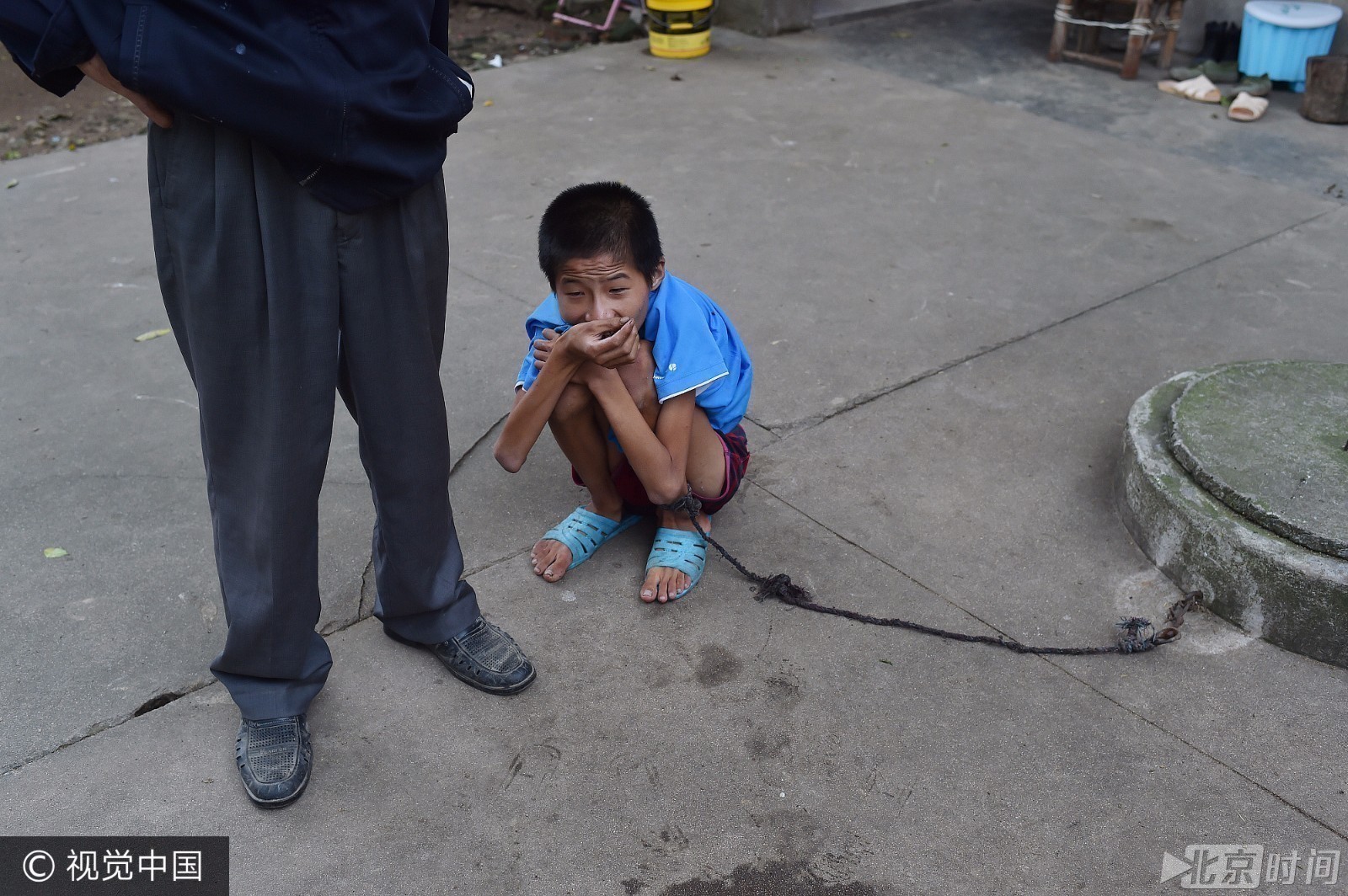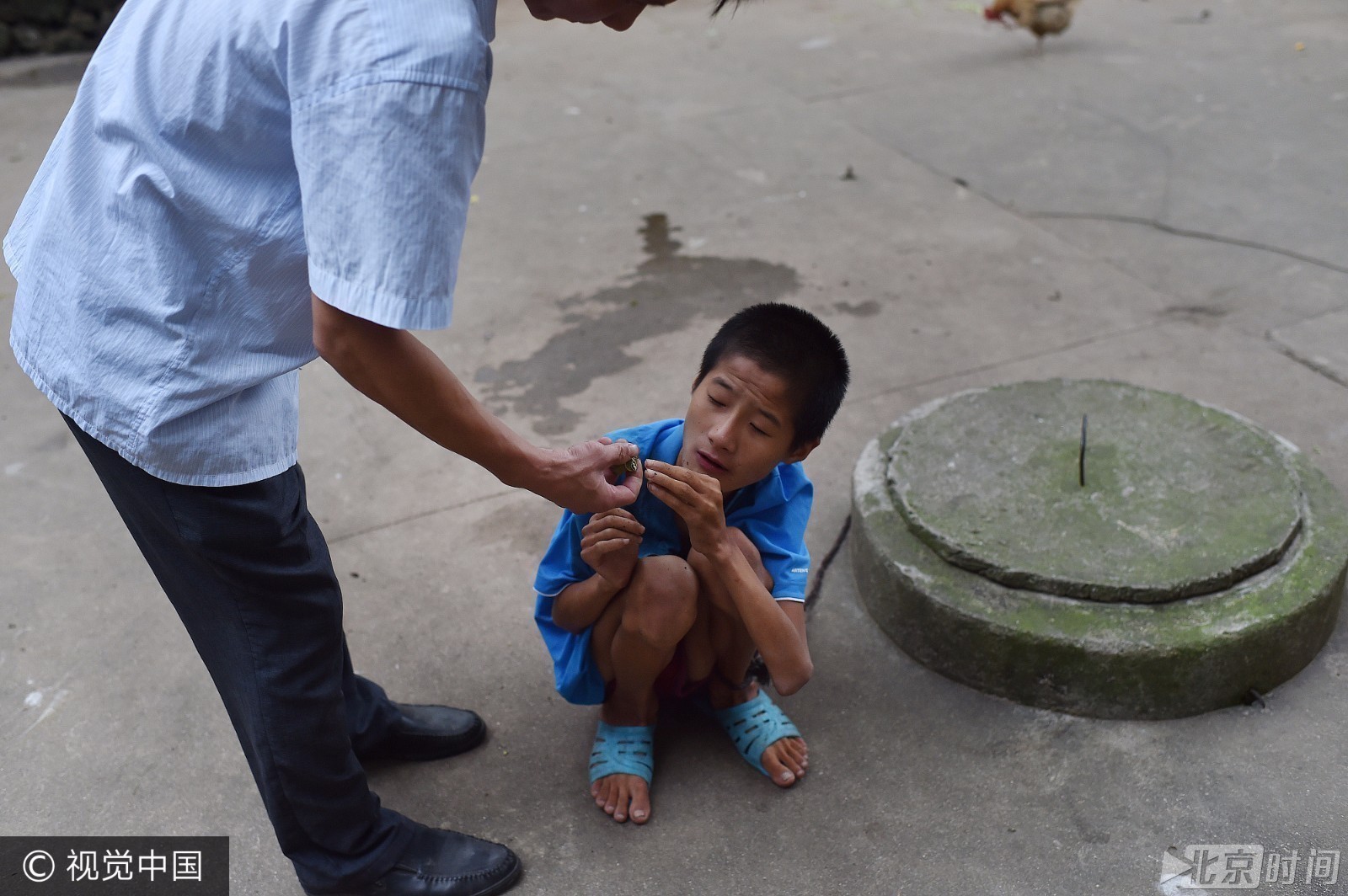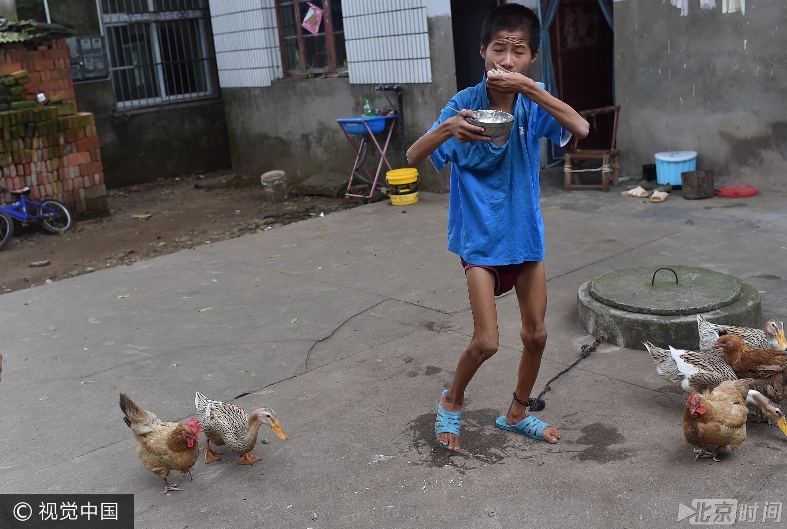 “晚上都必须拴在床上,否则就会跑出去,找不到。”杨中说,儿子杰杰大小便都不能自理,拴在井边,他能够着的东西啥都吃,树叶、鸡粪和他自己的大小便。