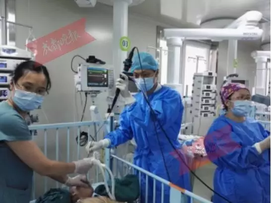 咳嗽输液突发呼吸不畅 胸片显示:左肺“不见了” 7月29日,原本身体很好的豆豆,不知为什么总会连续咳嗽,甚至嗓子都出现了沙哑,家长非常担心,赶紧带着豆豆到附近的某医院就医。可是,当输液的过程中,病情反而更加严重了,豆豆突然哮喘,气促、呼吸困难等症状。情急之下,经医院建议迅速转院到四川省某医院重症医学科进行抢救。 重症医学科副主任谢成告诉记者,接诊的时候豆豆气喘急促、口唇发绀,左侧肺部呼吸音消失,各项的生命指征都不好。重症医学科医护团队立即给豆豆气管插管、呼吸机辅助通气治疗,在维持孩子的氧合前提下,放射科顺利完成了床旁胸片检查,而胸片的结果却让在场所有人震惊:孩子的左肺竟然“不见了”?! 肺从片子上消失,医学上称为“白肺”。正常的肺部有空气进入,在 CT 片上是呈影的。“白肺”,即肺部显影呈一大片的白色状,起因一般是重症肺炎或者大量的胸腔积液。但是豆豆并没有肺部疾病史,究竟是什么原因呢?重症医学科副主任谢成告诉记者:“当时反复追问家属是否有异物呛入病史,但是孩子的父母都坚决否认。” 呼吸气道被完全堵塞 罪魁祸首竟是花生米 情急之下,重症医学科副主任谢成决定立即进行床旁纤维支气管镜探查气道情况。当纤维支气管镜进入气道时,显示屏上看到豆豆的左侧主支气管被完全堵塞。如果不尽快解除堵塞,后果不堪设想。随后,经过同儿外科、儿科、耳鼻喉科、麻醉科等多学科专家成立专家小组会诊病情,结合小女孩的年龄特点,最终锁定支气管内异物或是塑型性支气管炎。