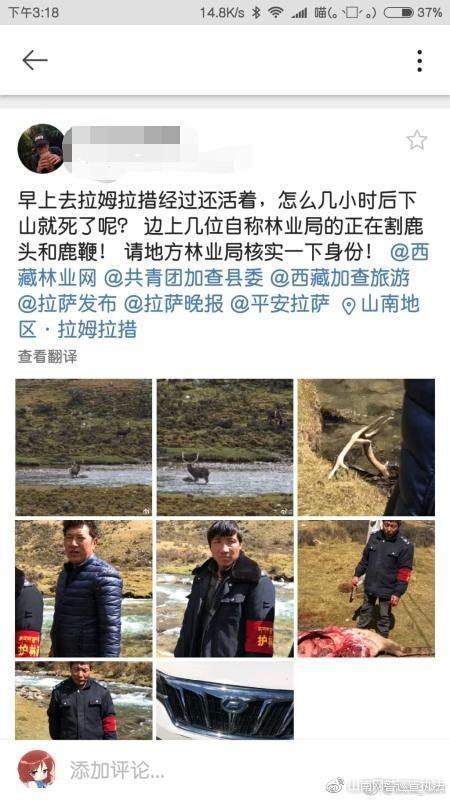 | 近日,网上流传西藏加查县“林业局的正在割鹿头和鹿鞭” 的消息。山南网警巡查执法称经县林业局核实,年长公鹿过河途中因溺水死亡。野鹿尸体由护林员处理,鹿角、鹿鞭由当地护林员组长统一上交加查县林业局,剩余尸体将就地掩埋。以下为警方声明: