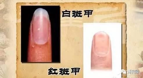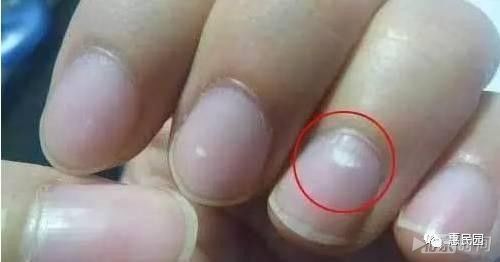 2、白色斑点 小孩的指甲上经常出现白色斑点,多见于肠胃积滞,消化不良或虫积或缺钙,可能是虫斑,说明体内有虫。如果成年人的指甲上出现白色斑点,则是营养不足的表现。 多见肝功能代谢或受损,特别是乙肝慢性病人。习惯性便秘,长期造成肠、胃紊乱也会出现点状白点。 3、白色指甲 一般营养不良的人容易出现指甲苍白的情况。如果指甲突然变白,则常见失血、休克等急症,或者是消化道出血等慢性疾病。