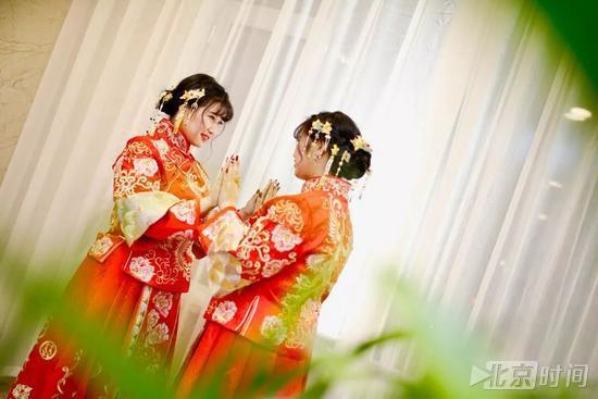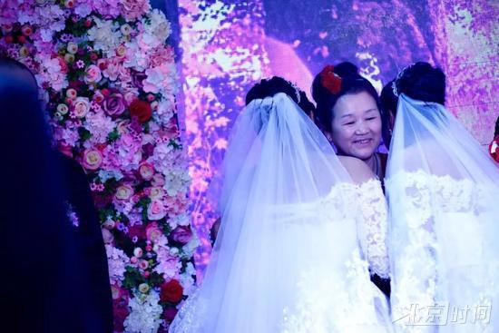 两位新娘给婆婆带花,并幸福地拥抱在一起!