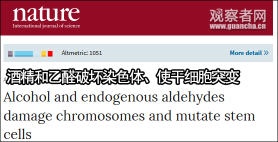 《自然》杂志网站截图 研究描述的“损伤”主要发生在造血干细胞中。研究人员通过染色体分析和DNA测序发现,酒精的初级代谢产物乙醛会导致小鼠造血干细胞DNA双链断裂。此前已有研究证实,在体外细胞培养试验中,乙醛的确会导致癌症。 论文指出,虽然部分DNA断裂随后被修复,但是残留损害仍影响广泛,包括某些区域被删除,染色体重排。而这些遗传变化接下来会被传递到无数源自这些造血干细胞的后代。具有自我更新的能力的造血干细胞能分化为各种血细胞前体细胞,最终生成各种血细胞成分,包括红细胞、白细胞和血小板。 帕特尔表示:“一些癌症发展的源头就在于DNA损伤,虽然这些损伤通常是偶然发生,但我们的研究可以证明,饮酒会增加DNA损害的风险。”