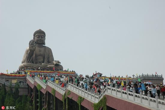 华西棉纺厂车间(图/东方IC) 南山村为代表的"投资控制"策略。 与华西村通过"分配-入股"方式控制实际分配的略为复杂管理策略相比,南山村将经济剩余直接转入投资的管理策略来得更加简单直白。从消费角度看,南山村在很大保持着集体生活方式,全部居民的生活消费由村企业全部供给,特别是老年人可以集体居住或部分时间免费生活在敬老院。当然村民的生活消费是在统一简朴标准之下的,北京的留民营也是这种方式。 与南山村简朴的生活水平与方式形成鲜明对照的,是南山的设施。 山东龙口的南山村在很大程度上是以建筑了一座远近闻名的"南山大佛"著称。南山村以村南一座小山得名,2000年后发展起来的南山村斥巨资打造南山景区,景区以佛教文化为主题,随后建设南山大佛。出了南山村向南走不远就可以望见小山顶上一座突兀的大佛。这座大佛十分了得,高达38米多,坐落山顶更显雄伟。走近一看,这座青铜巨佛建造的精美绝伦,让人很难想象是出自农民与村庄之手,再过500年这绝对是个盖世文物、世界文化遗产。