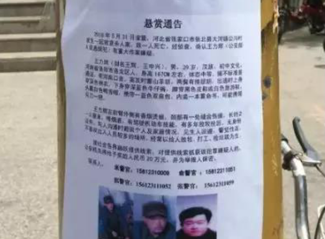 2018年5月31日凌晨,河北省张家口市张北县公沟村村民卢九林在家中意外死亡,公安机关经侦查发现,卢九林雇佣的牛倌“小王”具有重大作案嫌疑,遂悬赏5万元对其予以捉拿。而后,办案民警进一步侦查发现,“小王”正是之前曾在河南、河北、山西三省杀害5人、重伤1人的公安部A级通缉犯王力辉,悬赏额遂提高到20万元,关于王力辉的通缉令贴遍半个中国,甚至贴到了北京市延庆区的街头,一段时间后,据内蒙古赤峰巴林右旗警方通报,对王力辉的悬赏提高到了40万元。