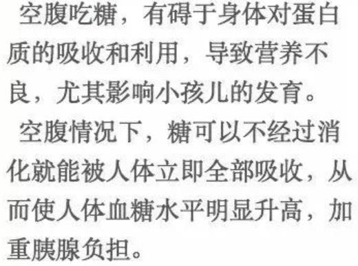 这个说法,本身就是矛盾。既然是空腹,胃和小肠基本排空,谈什么“阻碍蛋白质的吸收和利用”呢? 再者,糖分很多种,除了葡萄糖可以直接吸收以外,蔗糖、乳糖、淀粉等,都需要经过消化酶的作用,转变为单糖。怎么可能“不经消化立即全部吸收”呢? 此外,有些人因为长时间断食,出现低血糖。最常见的急救方案,是快速补充糖类,吃点糖块或者静脉注射葡萄糖。如果空腹不能吃甜食,他们该怎么办呢? 空腹进食甜食,确有可能导致血糖水平陡然升高。不过,还是那句话,要看剂量。 总之,经过几百万年的进化,人体远没有很多人想象得那么脆弱。空腹不能吃这个、空腹不能吃那个,还剩下什么能吃的呢? |