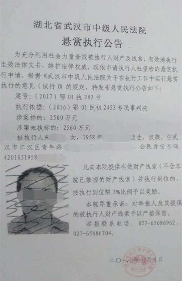朱某被抓后 今年4月20日,江汉区人民法院做出判决:朱某犯拒不执行判决、裁定罪,判处其有期徒刑1年3个月。朱某不服,向武汉市中级人民法院提出上诉。该院法官告诉朱某,她没有如实申报财产,而且违反了限制高消费的规定,案件事实清楚、证据充分。经过法院的教育和解释,朱某于近日撤销了上诉。 |