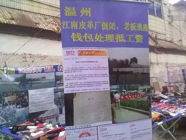 公告称,二次分配将于2018年8月10日开始实施,由管理人根据各债权人提供的银行账号以银行转账方式支付。最后分配的破产财产分配额为人民币6338292.36元,参与分配均为普通债权,债权总额为234033691.5元。对二次分配中债权人未受领的破产财产分配额,管理人将予以提存。债权人自本次公告之日起满二个月仍不领取的,视为放弃受领分配的权利,管理人或人民法院将提存的分配额分配给其他债权人。 这意味着,即便在《江南皮革厂倒闭了》网络神曲爆红期间,"厂长跑路"的"江南皮革厂"仍在依照法定破产程序,将剩余资产用以偿还债务。 事件起因>> 公司法人突然消失,工人工资妥善发放 "江南皮革厂"全称浙江江南皮革有限公司,2002年在温州设立,位于温州市龙湾区,投资方为温州江南控股集团,董事长黄作兴,做阀门起家。投产后,江南控股集团占皮革厂50%股份,黄作兴将工厂交给其侄子黄鹤管理经营。黄鹤拥有工厂10%股份,系法人代表。 资料显示,投产开始,江南皮革有限公司一直经营良好,一度成为当地知名皮革企业。2010年实现销售额3.41亿元,利润3425万元。当年还在台州临海开了新厂,两家工厂的产值合计达5亿。 值得注意的是,即便在生意最为红火的时候,浙江江南皮革有限公司也从未生产过成品皮包,其主营项目为PU合成革制造,合成革原料销售。
