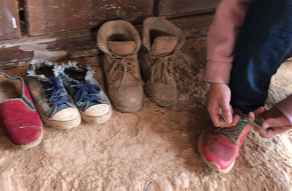 侯俊豹家在大山深处,一个只有56户人家的小村庄,当地的村民大多还没脱贫。因为这,宋学琴的父母坚决反对。遇到心爱的人,宋学琴说啥也不放手。没有彩礼,没有娘家人的祝福,23岁的她独自一人跳上大巴车就把自己嫁了。办了结婚典礼,丈夫领着她去镇上赶集,宋学琴蹬上高跟鞋就出门了。坑坑洼洼的山路令她苦不堪言,回家后默默收好高跟鞋,自此之后她再也没有穿过高跟鞋。