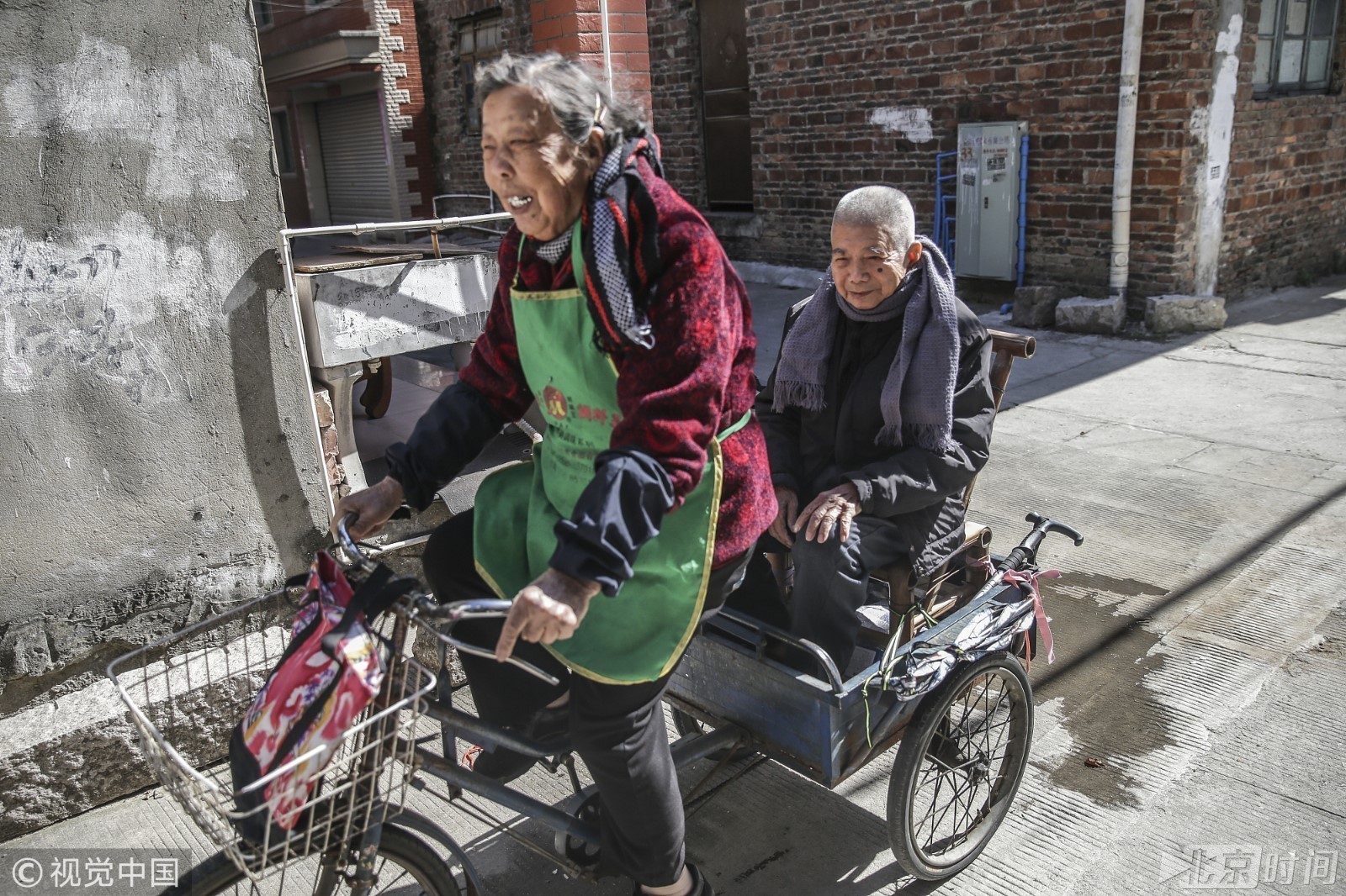 “年纪大没力气了,换在年轻时,三轮车我抬起来就往外走。”三轮车上绑着一张椅子,王丽霞用力固定着车子,薛炳南一手扶着椅子,一边慢慢挪到车上。他很心疼妻子要花大力气踩三轮车,就像幼儿园的小朋友一样,双手放在腿上,端端正正坐着,轻易不敢乱动。“虽然折腾人,但能让他上街看看,晒晒太阳,人精神多了,辛苦一点没关系。”踩了十几分钟,王丽霞骑不动了,就下来推着三轮车往家走。