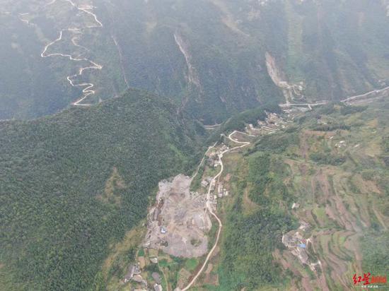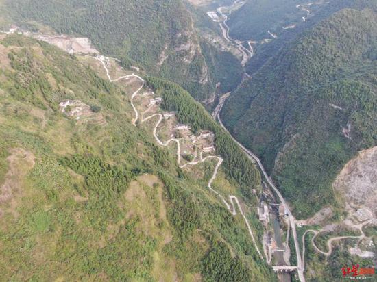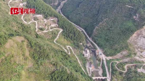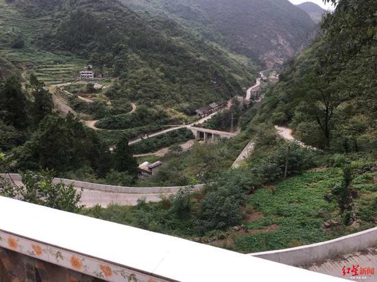 铁桥村大桥连通左侧大山。