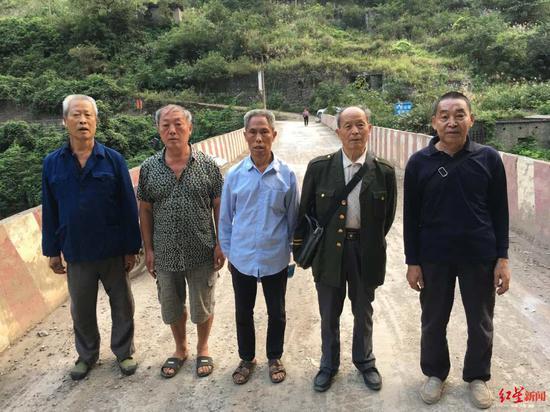 修桥人(左起):杨发政、安美蛟、甘宗良、赵永贵、李先辉在铁桥村大桥留影。