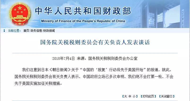 尽管谁都知道,贸易战是美方挑起来的。但对于这样的传闻,中方还是第一时间郑重澄清:我们看到了《朝日新闻》的报道,中国政府立场已多次申明,我们绝不会打第一枪,不会先于美国实施加征关税措施。