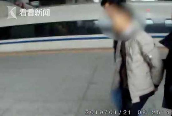 1月21日,广州南站G2117次列车正准备发车,几名警察忽然出现,将嫌疑人张某从座位上抓捕归案。