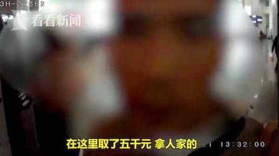仅仅过了10秒钟,与魏先生迎面走来的嫌疑人张某走近ATM机。张某拿出银行卡准备插卡,几秒钟后又收起刚拿出的银行卡,直接在机子上开始操作,并有取下一沓现金放入左裤袋的动作。
