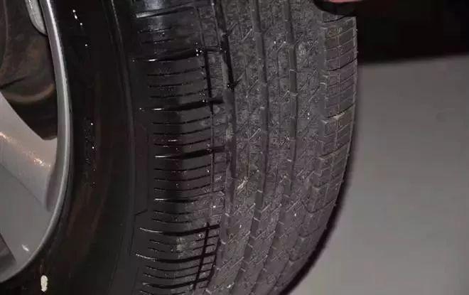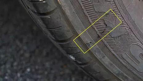 如果轮胎花纹厚度不足,很容易会爆胎。 可以用一枚一元硬币,顺着国徽顶端方向插入胎面沟壑中,因为硬币边缘到国徽顶端的距离在1到2毫米之间,如果这时你还可以看到整个国徽标志,那就该更换轮胎了。或者新一代的轮胎上胎面花纹磨损指示线露出,也要及时更换新胎。 轮胎侧壁裂纹